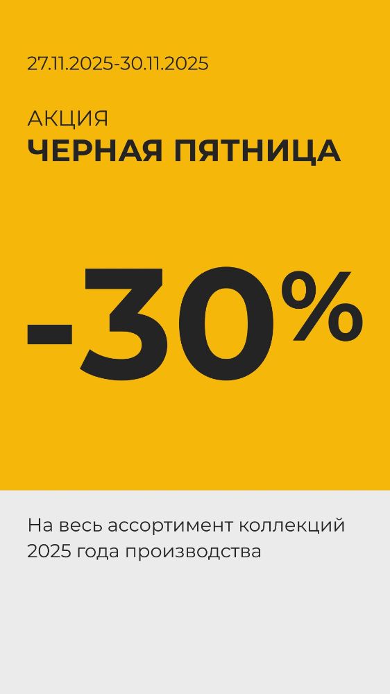 - скидка 30% на весь ассортимент коллекции 2025 г.